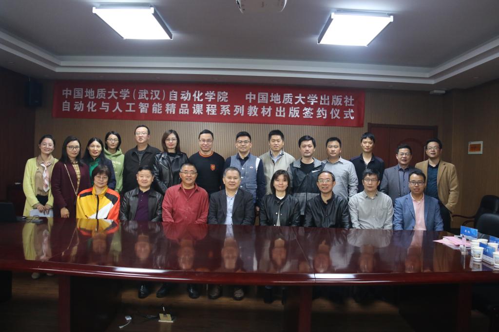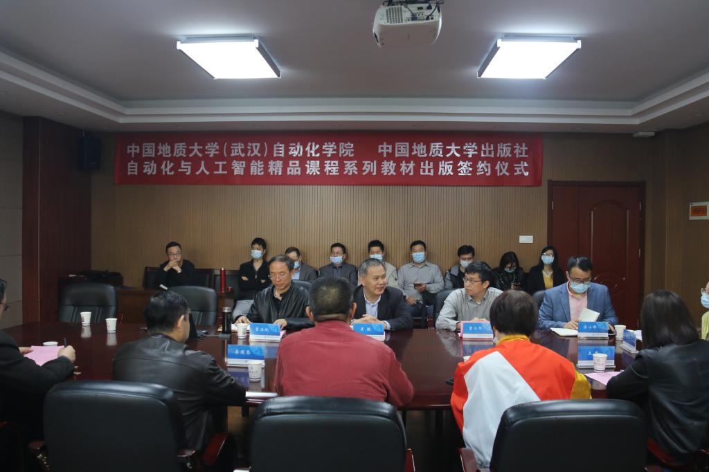 11月10日,我院组织建设的“自动化与人工智能精品课程系列教材”出版签约仪式在信息楼316会议室举行。中国地质大学出版社党委书记兼总编辑李国昌、社长毕克成等领导及相关负责人,中国地质大学教务处副处长王莹,麻豆av
