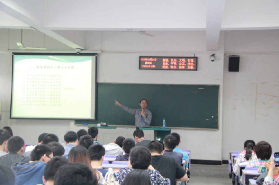 党委书记董浩斌教授主讲,其授课主题为“伟大的理想,崇高的目标——中国梦”。