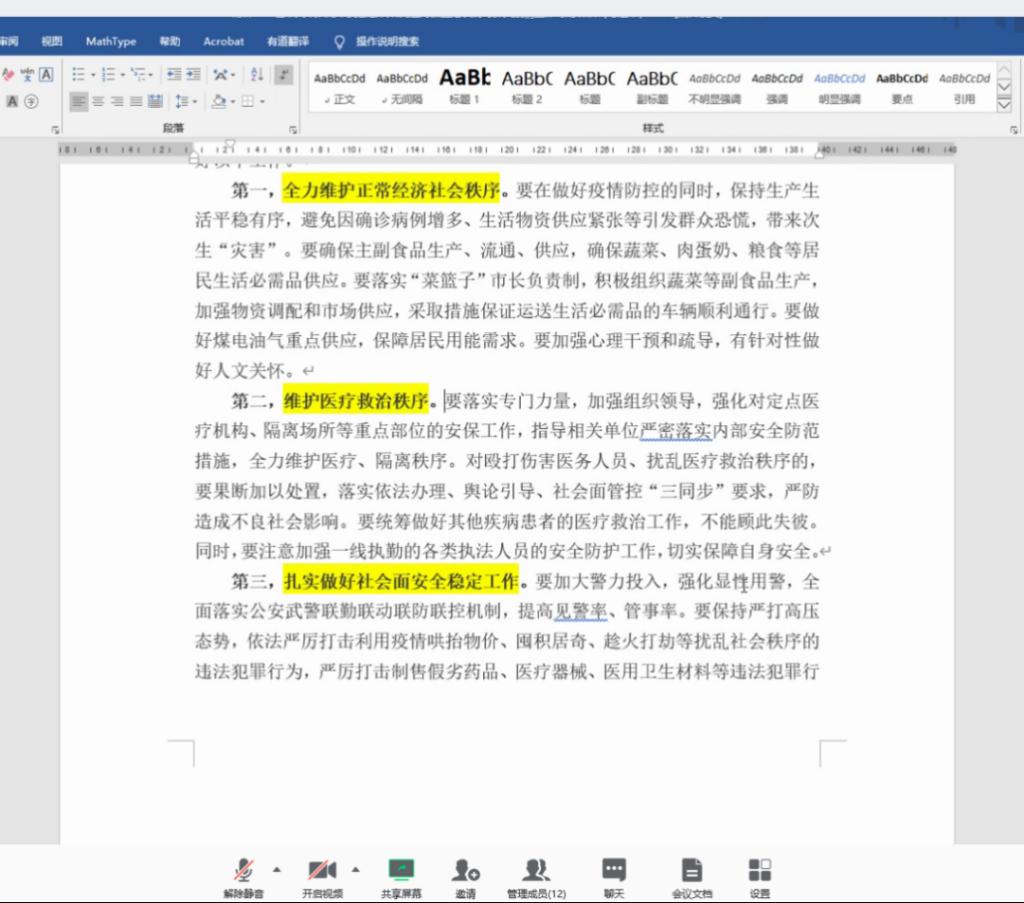 支部书记白春辉将学习文件总结为以下几点,党中央对疫情形势的判断是准确的,各项工作部署是及时的,采取的举措也是有效的;此次疫情是一次危机,也是一场考验。防控工作取得的成效,再次彰显了中国共产党领导和中国特色社会主义制度的显著优势;各级党组织要认真履行领导责任,特别是抓落实的职责,把党中央各项决策部署抓实抓细抓落地,让党旗在疫情防控斗争第一线高高飘扬;各级党组织和广大党员、干部把打赢疫情防控阻击战作为当前的重大政治任务,把党的政治优势、组织优势、密切联系群众优势转化为疫情防控的强大政治优势;要在疫情防控第一线考察、识别、评价、使用干部。