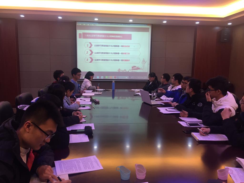 中国共产党第十九次全国代表大会于2017年10月18日至24日在北京隆重召开,这是包括广大青年学生在内的全党全国各族人民共同关注的一件大事,为深入学习贯彻党的十九大精神,我院深入开展了系列学习实践活动。2017年11月,我院党委书记董浩斌、副院长曹卫华、副院长金星、副院长陈鑫、党委副书记何建新、团委书记谭文伦及办公室组织人事秘书孔娟参加学生党支部支部会议,带领学生党员学习党的十九大精神。