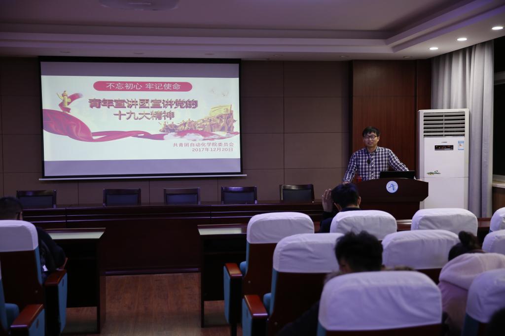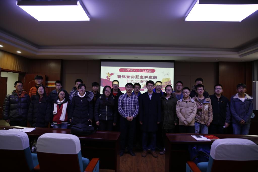 在310报告厅举办党的十九大精神宣讲会。校团委党的十九大精神宣讲团成员霍少孟老师、院团委书记谭文伦老师共同出席了此次大会。我院团委组织部成员以及来自2015级、2016级、2017级的共一百多名团员青年参加了学习。