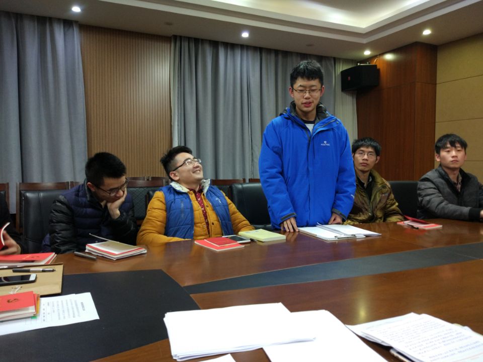 孟庆鑫同志谈及自己一年来从积极分子转为预备党员的心路历程,在学习上他积极上进,勤恳务实,已经完成了两篇小论文的撰写,在生活中同老师和同学相处融洽,时刻以党员标准严格要求自己,但是性格比较内向,同时缺乏体育锻炼。周洋同志在思想上积极乐观,学习上勤奋刻苦,注重实践。吴笑民同志在思想上积极进取,工作认真踏实,生活勤俭节约,但是工作上的主动性有待提高。金丽同志努力学习科学文化知识,工作上认真完成老师交代的任务,能够积极讨论问题,但是希望能够更好的做到“今日事,今日毕”。黄自鑫同志认真依照博士培养计划的要求,努力践行科研和生活两不误,但在作息时间上仍然需要好好调整。林文娟同志发挥了党员的先锋模范作用,政治思想水平有提升,学习工作是取得了一定的成果,但仍然有进步的空间,党性修养需要不断认识、提高和升华。