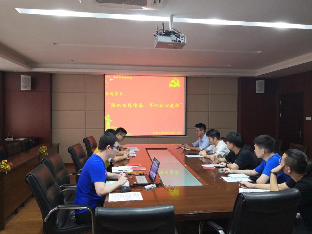首先,全体与会党员齐唱《中华人民共和国国歌》,重温入党誓词。党支部新接收党员7人,乔金龙介绍了党支部的基本情况。随后,乔金龙带领大家学习了党章第五章的内容,主要涉及党的基层组织、组织机构的设立等知识。接着,支部开展强化理想信念,牢记初心使命的专题学习,内容分为两部分:自学内容和实践内容。乔金龙对自学内容作了详细阐述,鼓励大家发挥主观能动性,采用线上线下相结合的方式开展形式多样的自学活动,支部后期将陆续开展辛亥革命纪念馆实地参观、学习之路主题党课等实践活动。专题学习后,支部成员观看了新中国成立70年成就系列短片,深刻感受了新中国成立70年来国家和人民生活发生的巨大变化,支部成员都为此感到骄傲与自豪。接下来,支部开展“为党员过政治生日”活动,九月份入党的党员齐信钊同志结合自身成长过程,讲述了自己入党前后思想以及政治素养的改变与提升情况。最后,支部全体成员合唱《我和我的祖国》,庆祝新中国70华诞。