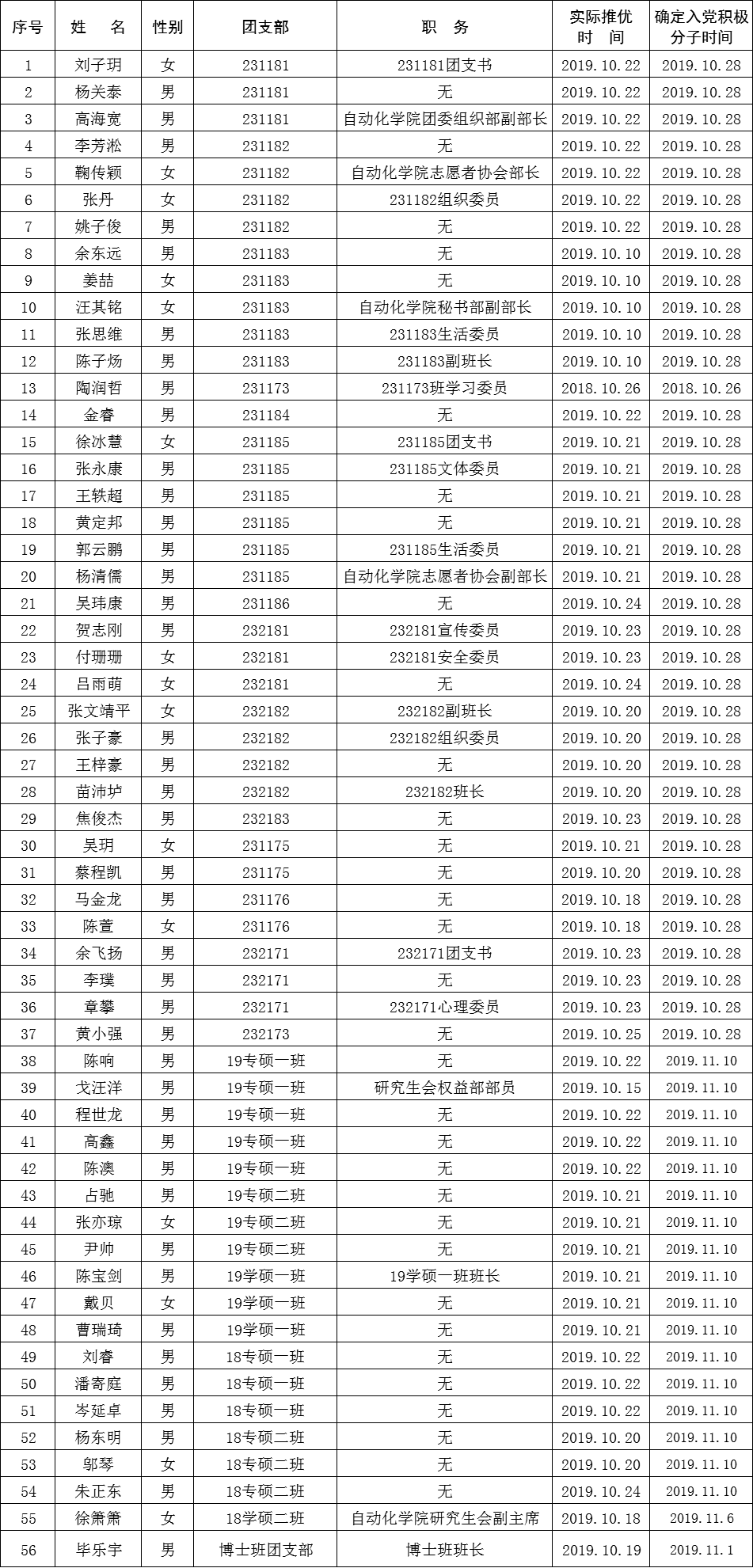 经过学院各党支部慎重考虑,从本科生、研究生团支部推荐的优秀青年中确定麻豆av 第十一期入党积极分子培训班学员56人,先将名单公示如下: