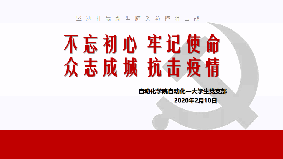 2020210日下午,为响应学校党委关于疫情防控工作的部署和安排,自动化一大学生党支部全体党员围绕“不忘初心、牢记使命、众志成城、抗击疫情”召开了一次特殊的线上组织生活会。支部书记白春辉主持本次会议,支部13名党员同志全部参会。