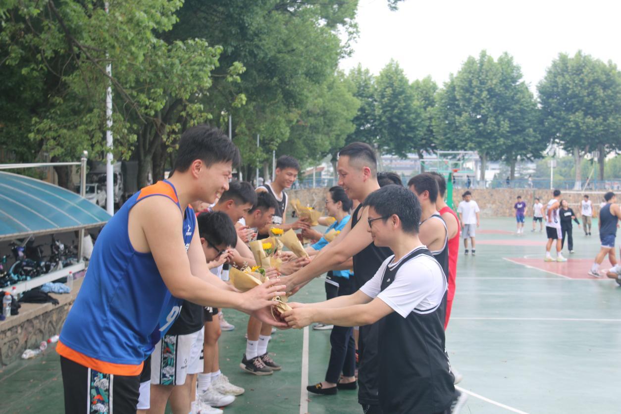 赛后领导老师集体为毕业生送上鲜花与祝福,并合影留念。师生以球赛为媒介,同场竞技,在球的传递与拼抢中,在呐喊和欢呼声中,挥洒汗水,为即将跨出校园的我院2023届毕业生送上了一份特别的校园记忆。