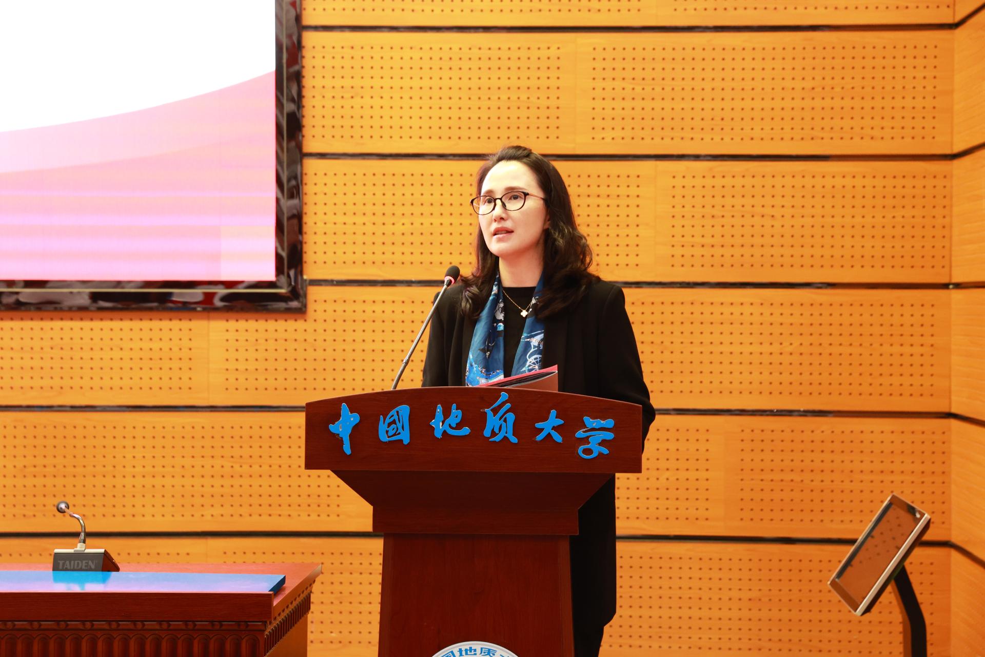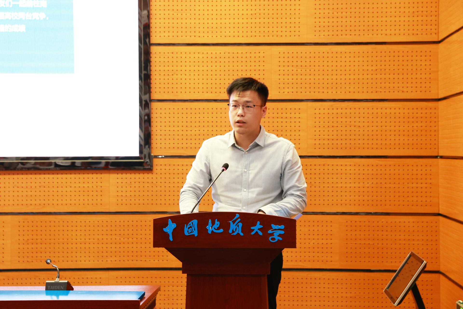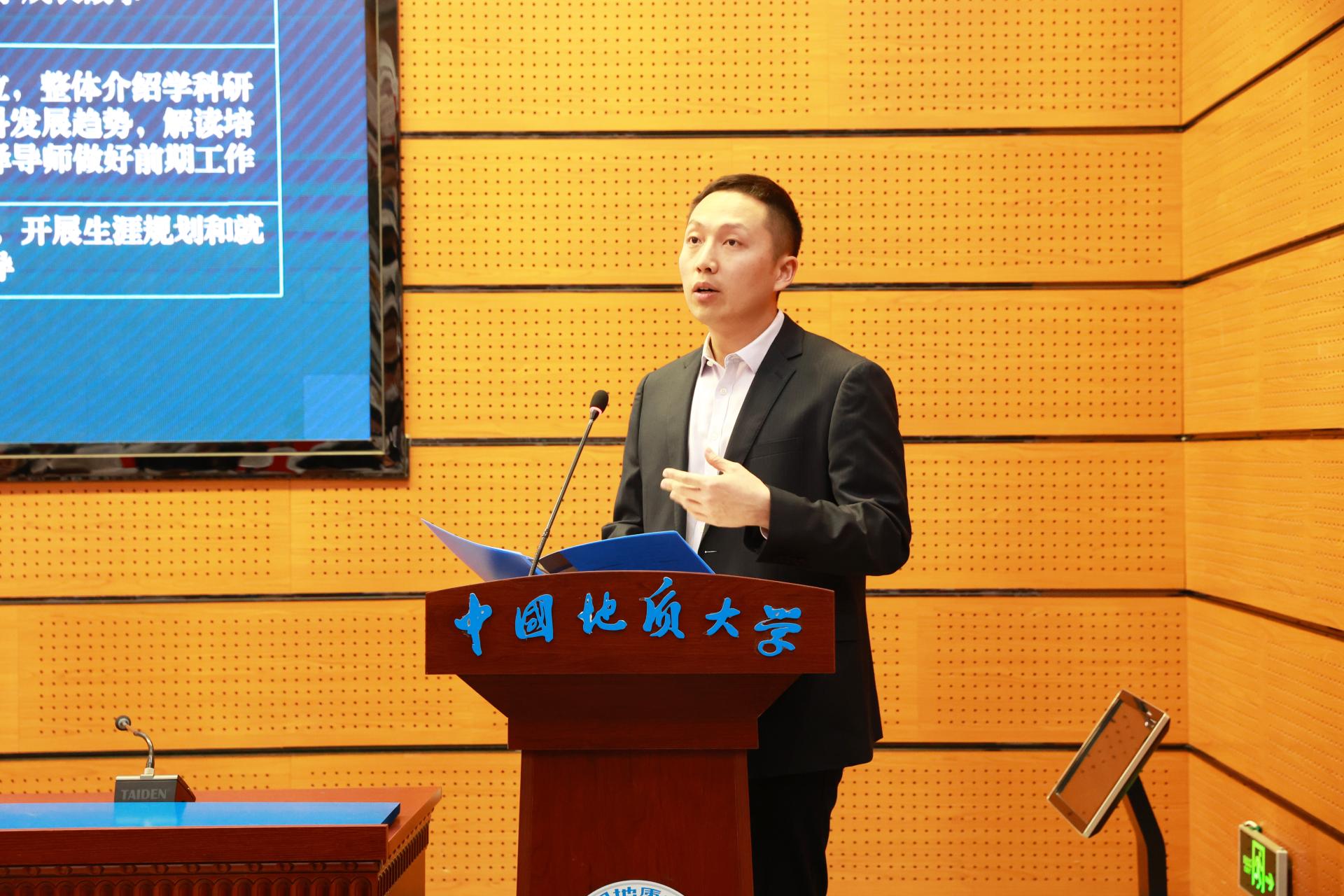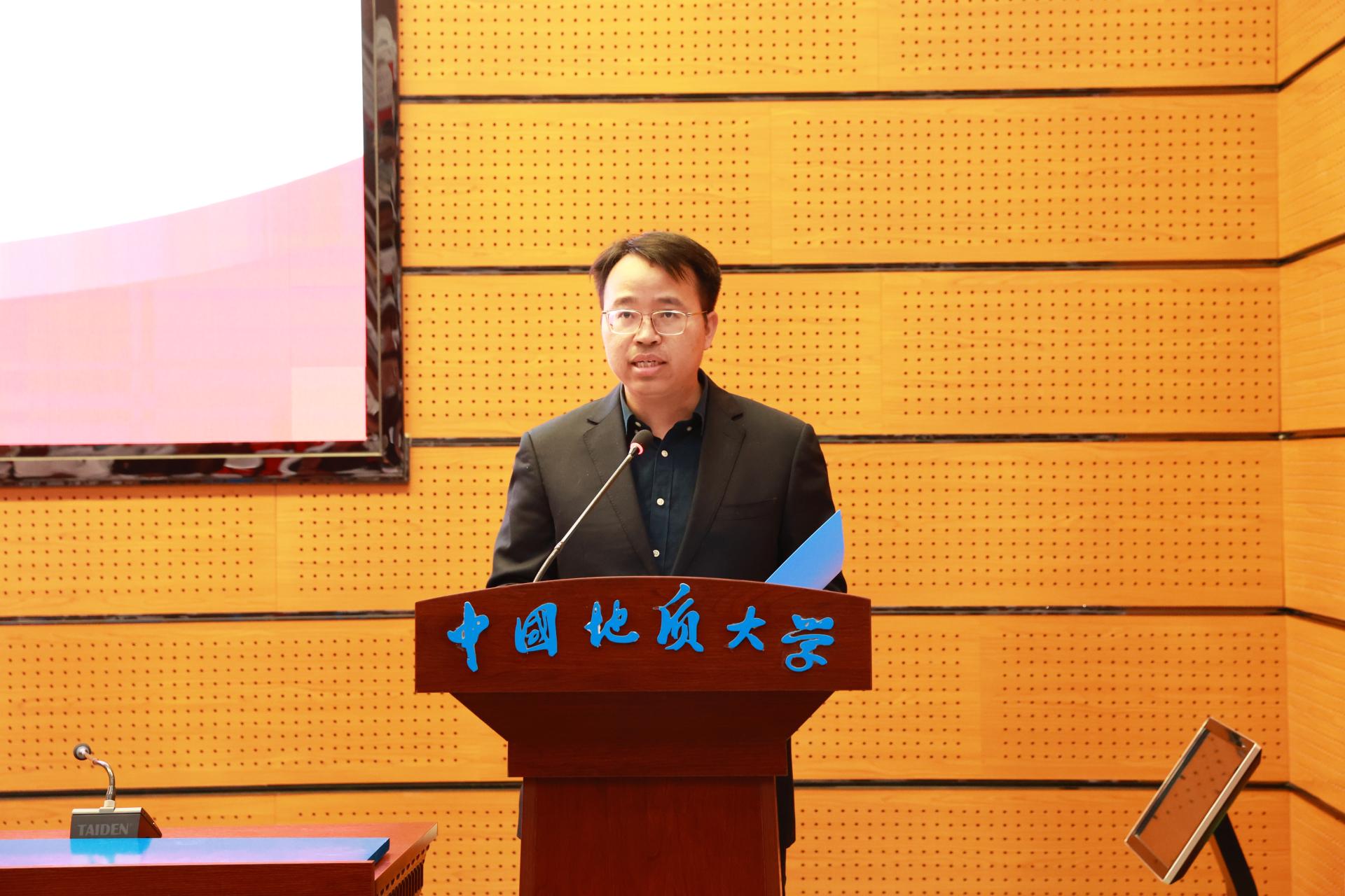 教师代表杜胜教授在发言中向同学们提出了三点希望,坚定专业自信、提升专业能力、强化专业担当。希望同学们以专业为基础,担当时代重任,传承“艰苦朴素,求真务实”的地大精神,为实现中华民族伟大复兴的中国梦而努力奋斗。