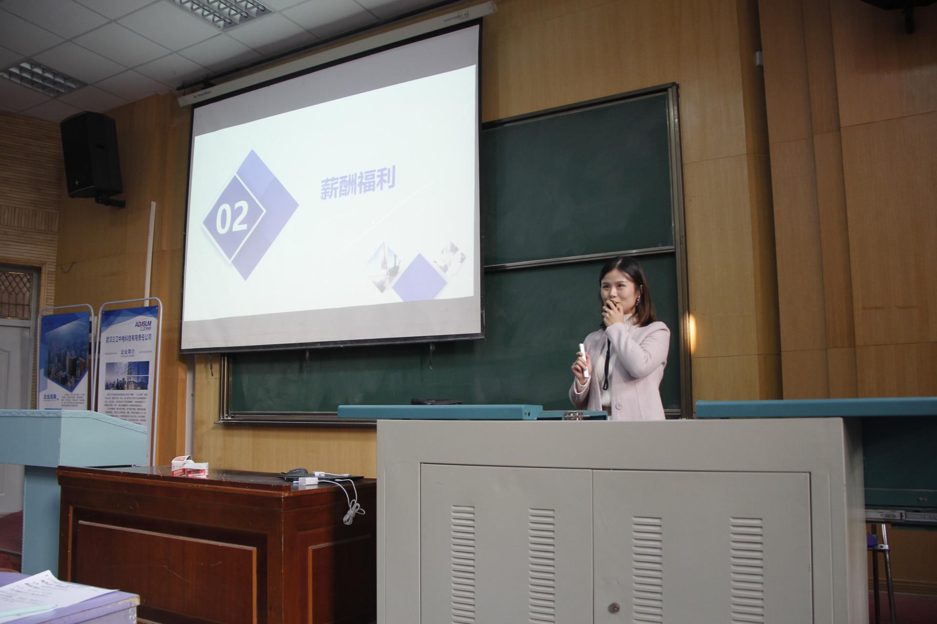 首先,三江中电总经理助理韩总从专业技术角度给同学们进行分享,针对公司开发的产品和业务为同学们介绍理论知识在企业中的实际应用,从输变电在线监测、物联网系统建设和人员技能需求三个方面展开,详实丰富,现场同学们积极提问,与主讲人展开专业交流,现场气氛热烈;随后HR李佳为同学们详细介绍了三江中电公司情况、麻豆av以及岗位介绍,帮助同学们了解市场需求。