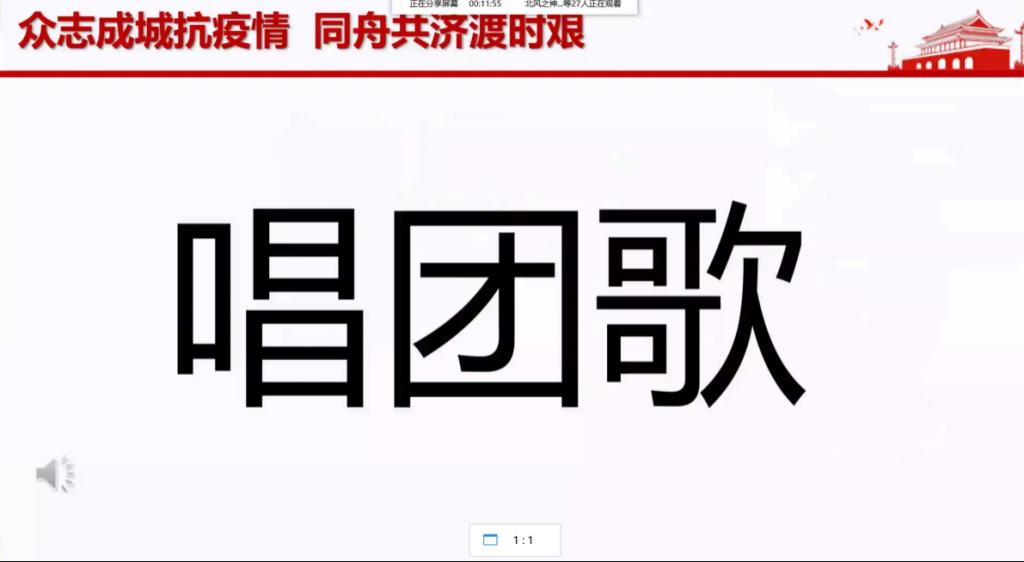 会议开始前主持人播放抗疫歌曲《一直到黎明》,并欢迎同学们交流分享寒假里的所见所闻所感。会议开始,首先由团支书张丰昱对本次团会进行总体介绍,并播放《众志成城共同抗疫》MV,第一部分结束。