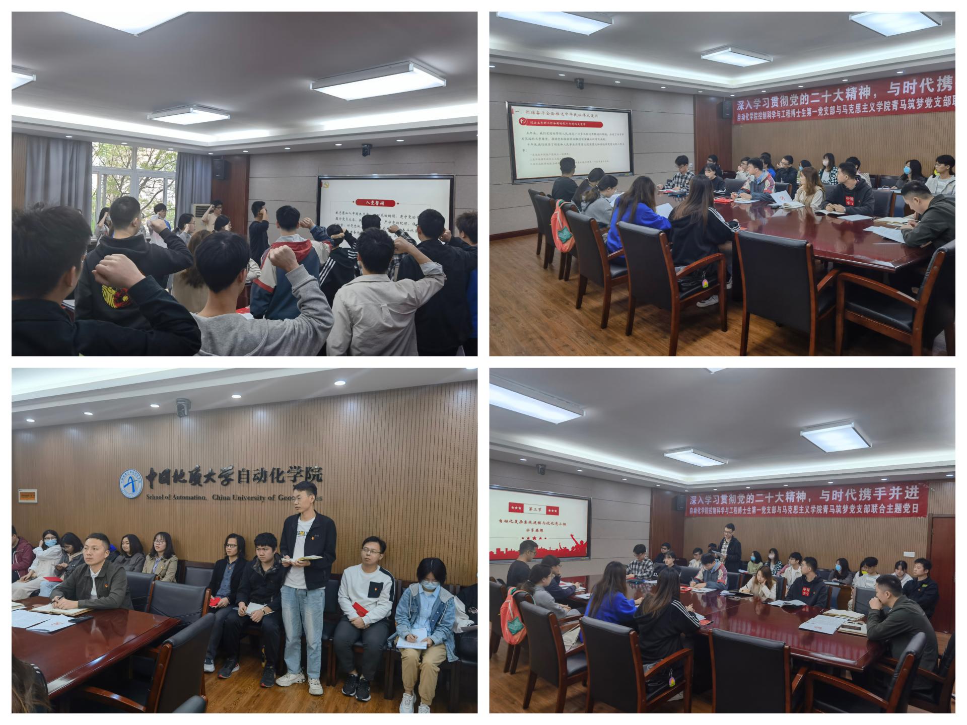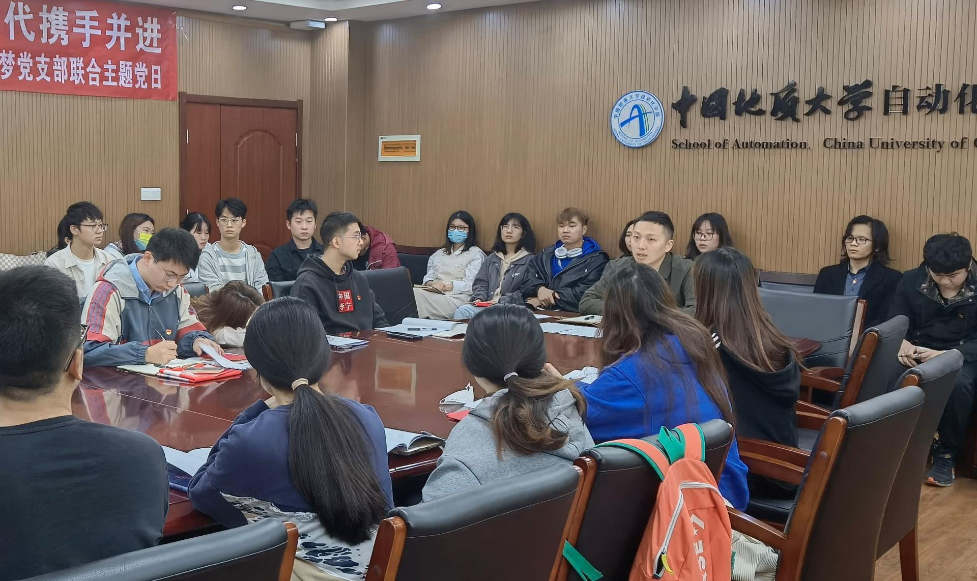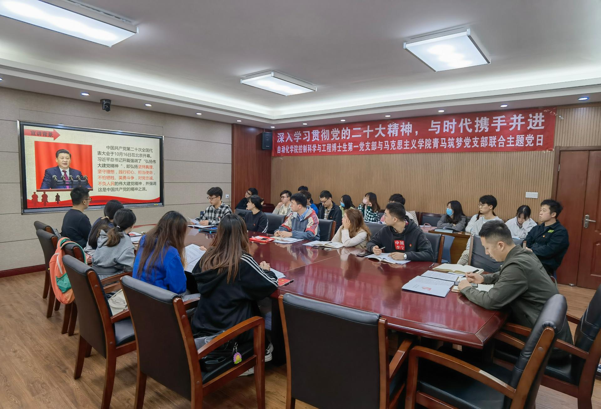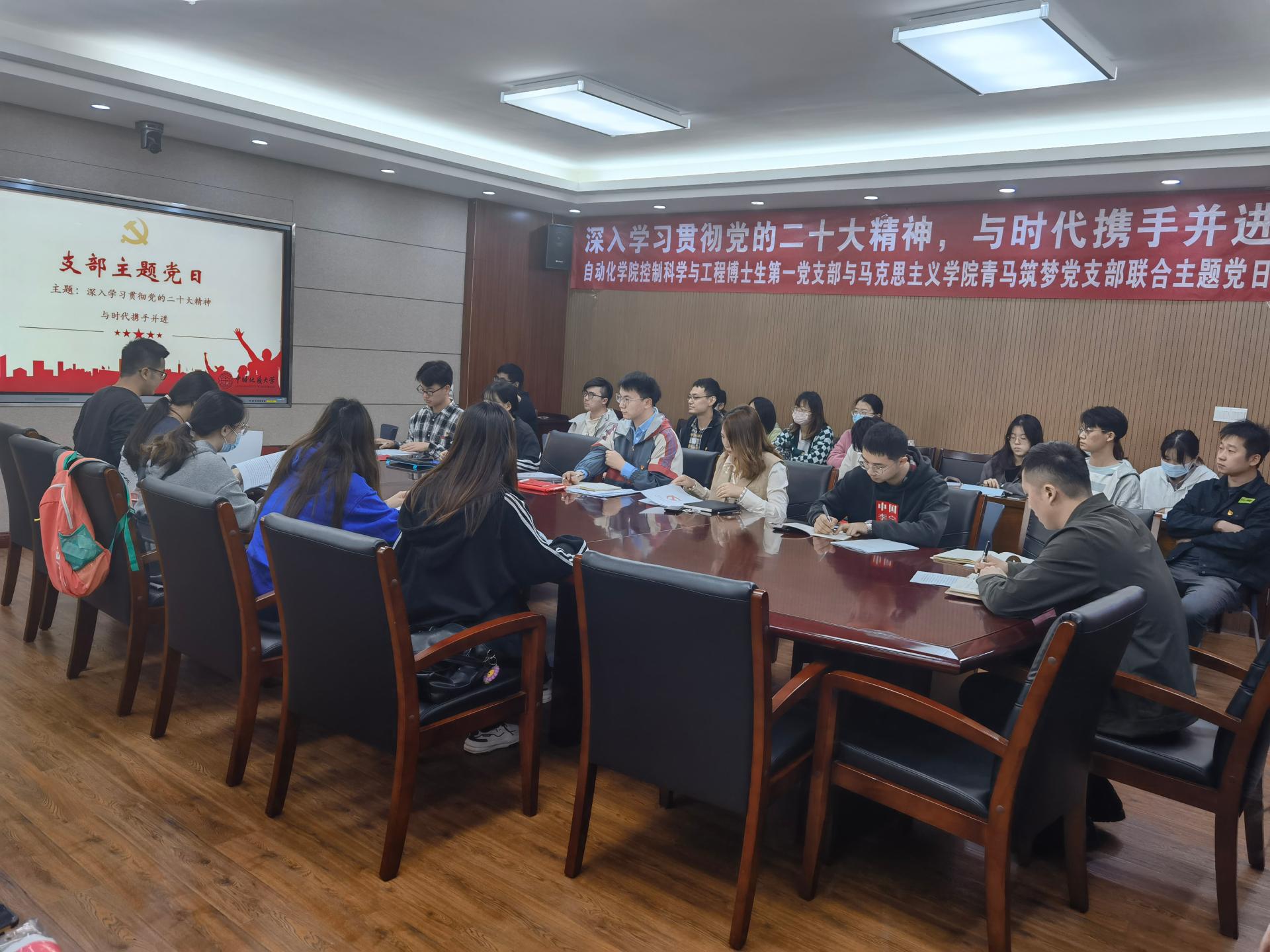 (通讯员 陈文虎 陈子怡)为深入学习贯彻党的二十大精神,进一步增强基层党组织的组织力、凝聚力和战斗力,积极探索学生党支部联建共创新路径,10月30日上午,湖北省高校党建工作样板党支部、麻豆av 控制科学与工程博士生第一党支部(以下简称“博一党支部”)与学校先进基层党组织、马克思主义学院青马筑梦党支部(以下简称“青马筑梦党支部”)在信息楼316会议室开展联合主题党日活动。麻豆av 党委副书记王向东、麻豆av 研究生辅导员王艺霖、博一党支部以及青马筑梦党支部全体党员参与了本次主题党日。主题党日由青马筑梦党支部书记耿学栋同志主持。