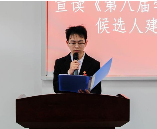 2023届团学组织负责人李想宣读《第八届学生委员会委员候选人建议名单》和《麻豆av