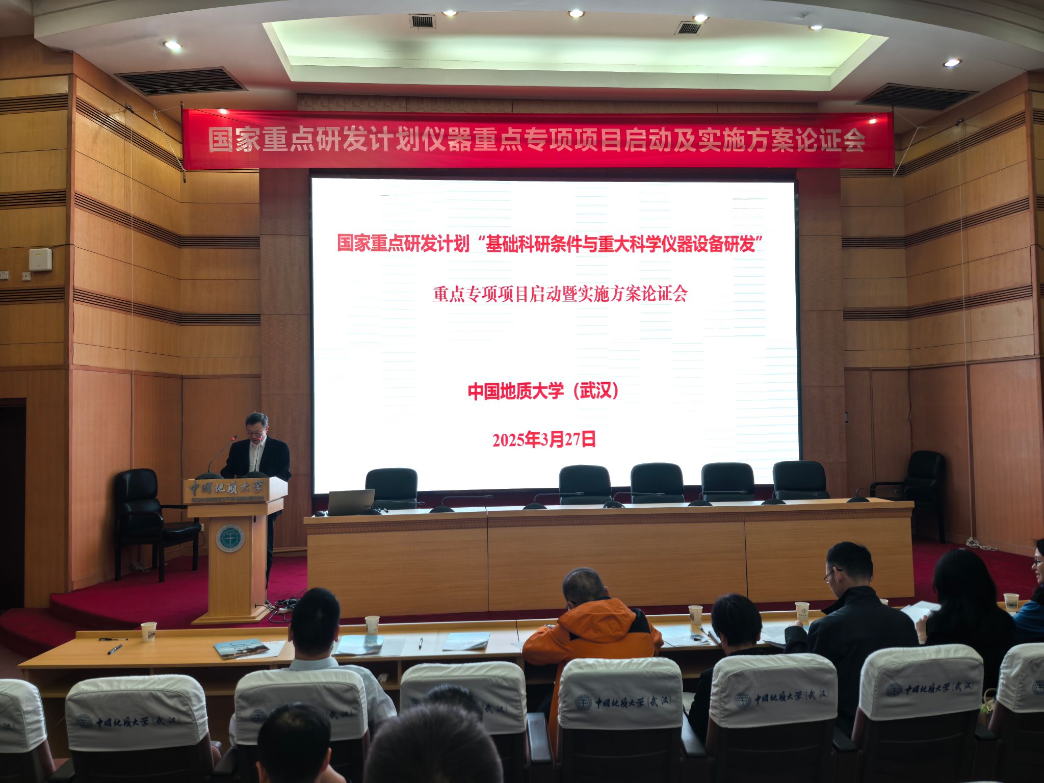 2025年3月27日,由麻豆av 吕涛教授主持的国家重点研发计划“基础科研条件与重大科学仪器设备研发”重点专项“固体样品直接进样器”项目启动暨实施方案论证会在迎宾楼报告厅召开。北京控制工程研究所刘淑芬研究员、上海市计量测试技术研究院李源教授级高级工程师、华中科技大学秦应雄教授、中国科学院西安光学精密机械研究所杨直副研究员、中国地质调查局武汉地质调查中心杨红梅教授级高级工程师来我校参与交流指导。我校副校长章军锋,科学发展院院长严德天,麻豆av 党委书记朱荆萨,以及各课题承担单位参研人员参加会议,会议由严德天院长主持。