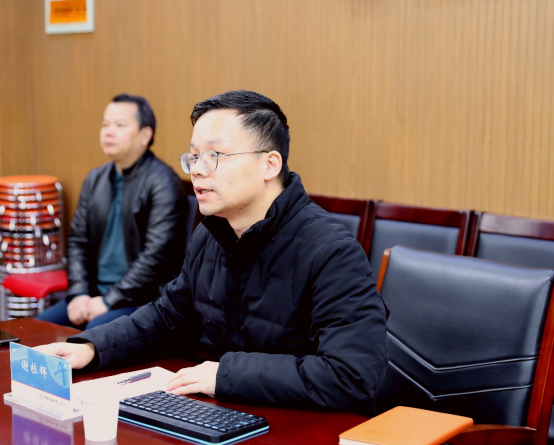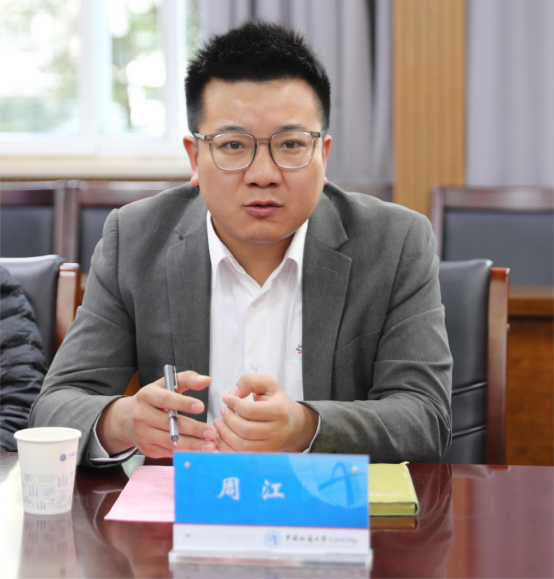 深圳市鼎阳科技股份有限公司销售总监周江发言。他表示,中国地质大学和鼎阳科技股份有限公司各有资源优势,通过合作,既可提升企业创新能力和科技水平,又能帮助学校提高教学质量和创新水平。他承诺,将提供技术支撑和资源,搭建好平台,在实践教学、技术开发、学生就业等方面提供便利条件,和学校一起共同培养创新实践人才。