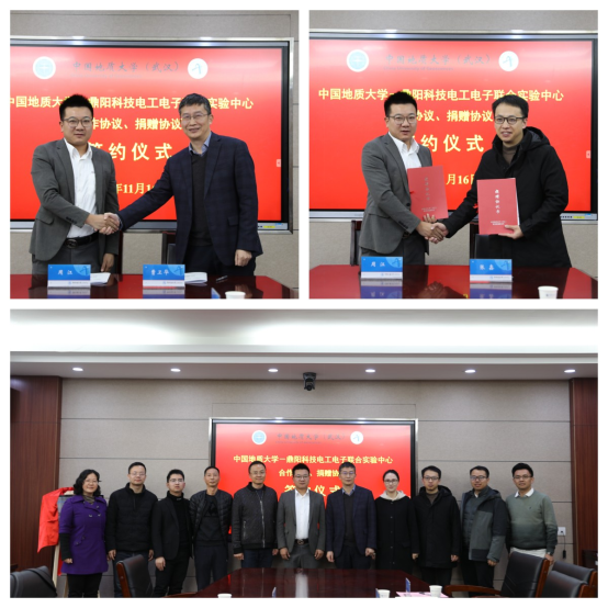 与深圳市鼎阳科技股份有限公司合作协议、捐赠协议签订仪式在我院举行。深圳市鼎阳科技股份有限公司销售总监周江、鼎阳湖北总代理沈东辉、鼎阳科技股份有限公司销售经理胡德才,麻豆av