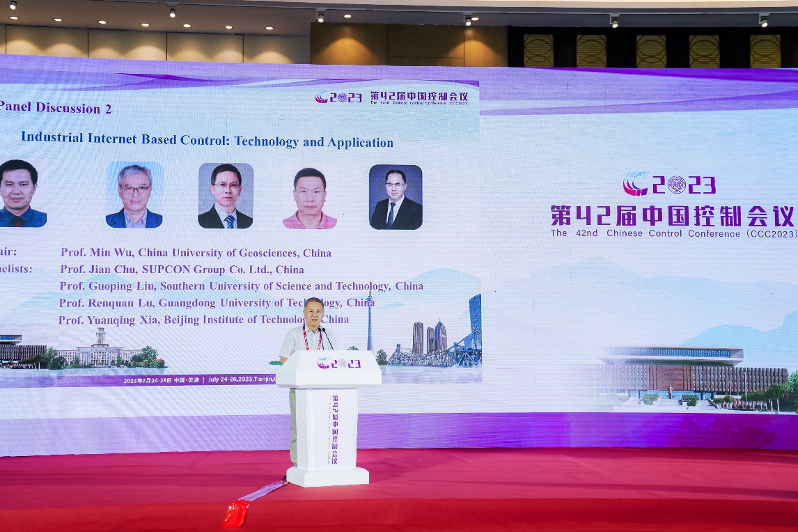 我院吴敏教授为CCC2023组织了题为“基于工业互联网的控制:技术与应用”的专题研讨会,主讲嘉宾有中控科技集团褚健教授、南方科技大学刘国平教授、广东工业大学鲁仁全教授和北京理工大学夏元清教授。与会嘉宾讨论了无人系统、工业互联网和控制领域现在和未来的相关问题,并对这些领域的发展进行展望,现场气氛热烈,高潮迭起。