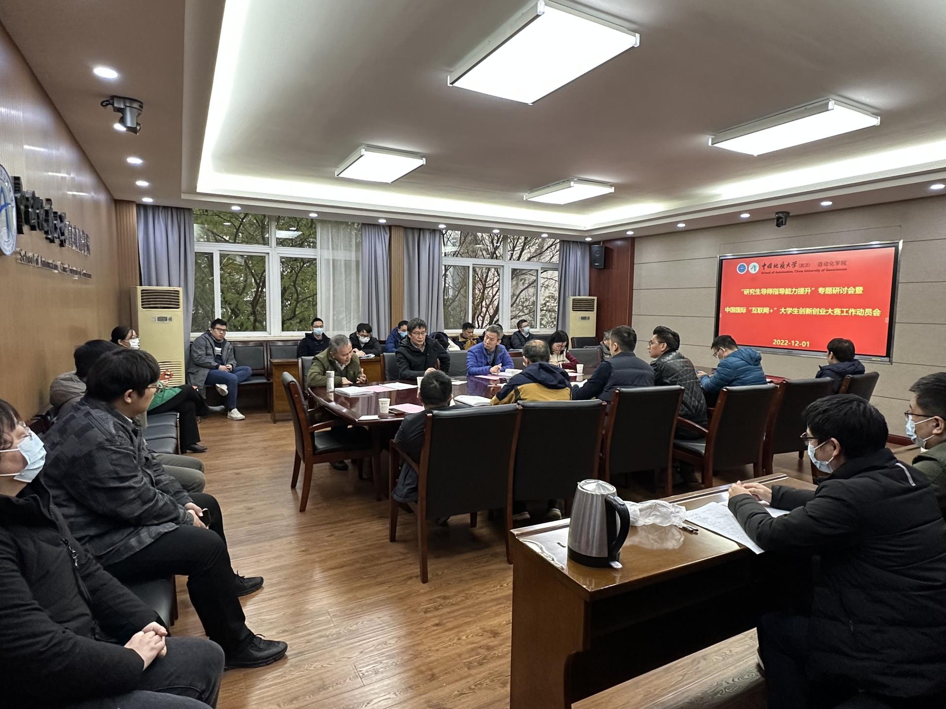 组织召开了“研究生导师指导能力提升”专题研讨会暨中国国际“互联网+”大学生创新创业大赛工作动员会。会议以“研究生培养方案修订建议与创新创业能力提升路径”为主题,围绕国内外控制学科培养方案调研情况、学院研究生培养方案修订工作情况、研究生创新创业能力提升等方面展开研讨。校研究生院培养处和校创新创业工作办公室相关负责人、学院领导班子、全体研究生导师参加研讨会。会议由副院长陈略峰教授主持。