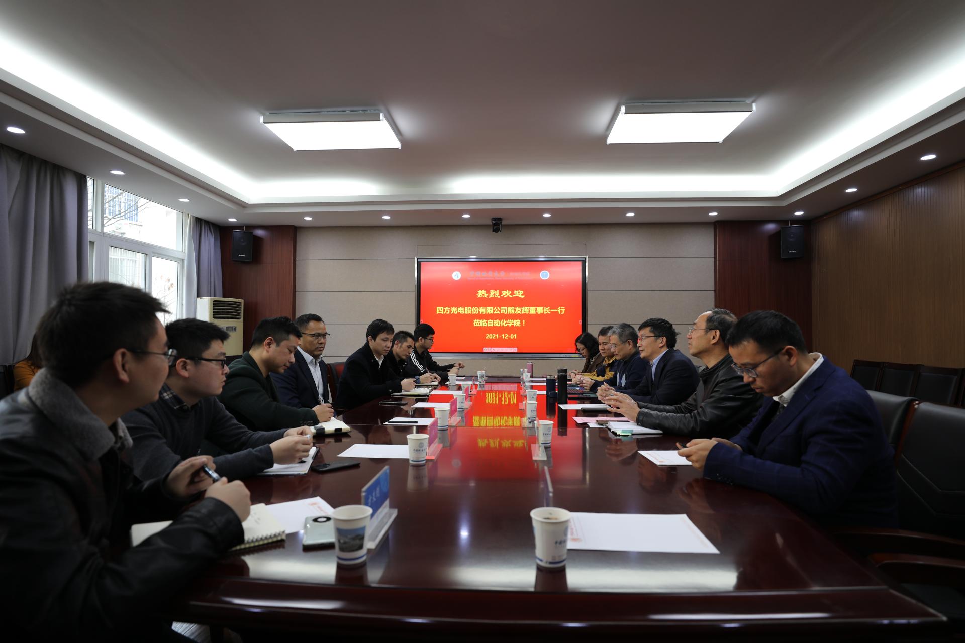 2021年12月1日,四方光电股份有限公司(简称:四方光电)董事长熊友辉一行4人应邀来我院交流,院长曹卫华、院党委书记董浩斌、副院长陈鑫以及相关科研实验室负责人参加交流座谈会。