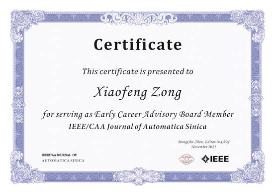 2021年11月,IEEE/CAA Journal of Automatica Sinica期刊首届青年编委招募工作圆满落幕。经专家委员会遴选, 62位杰出青年学者从350余位海内外优秀申报者中脱颖而出,宗小峰教授成功入选该期刊青年编委。