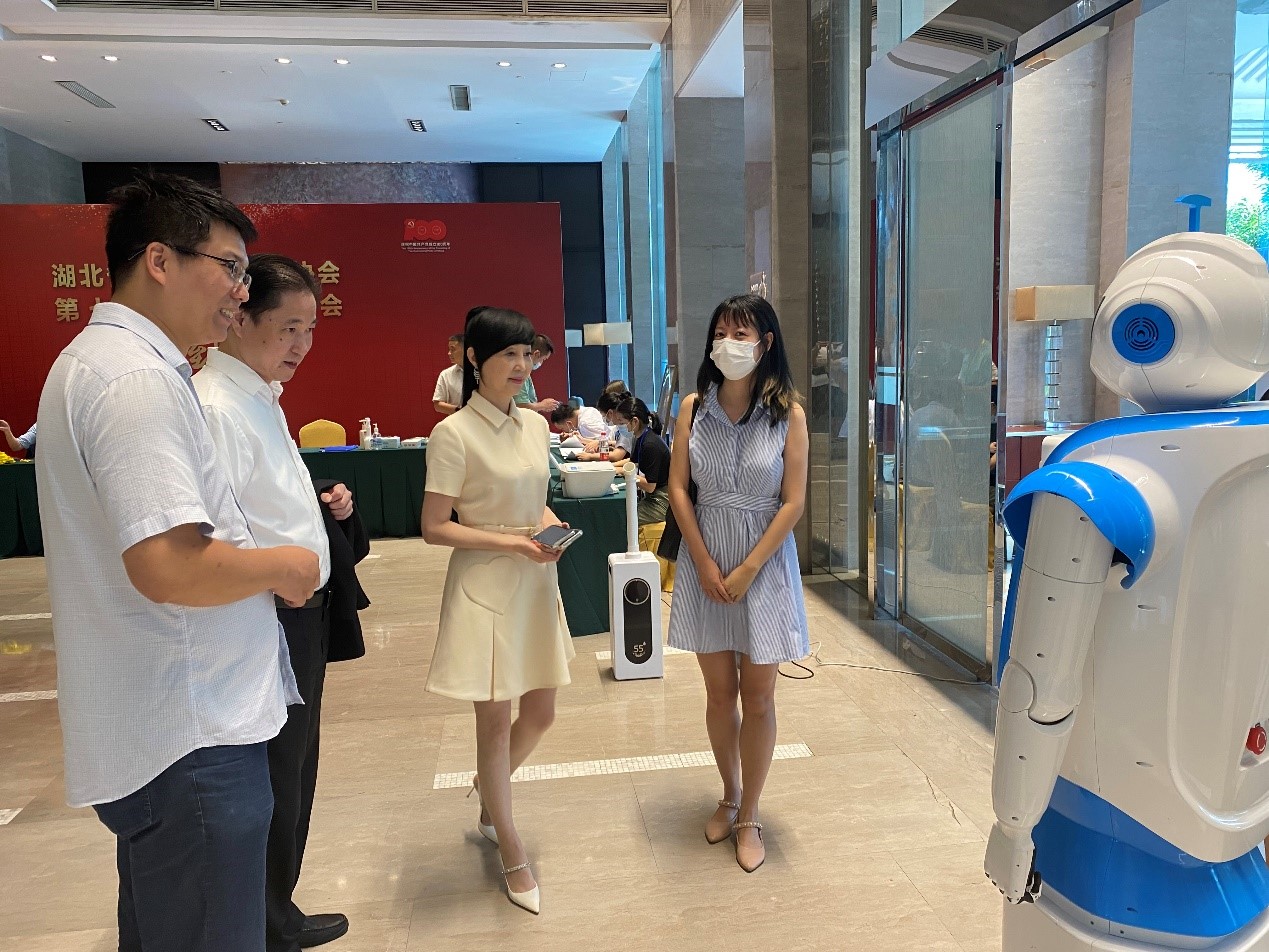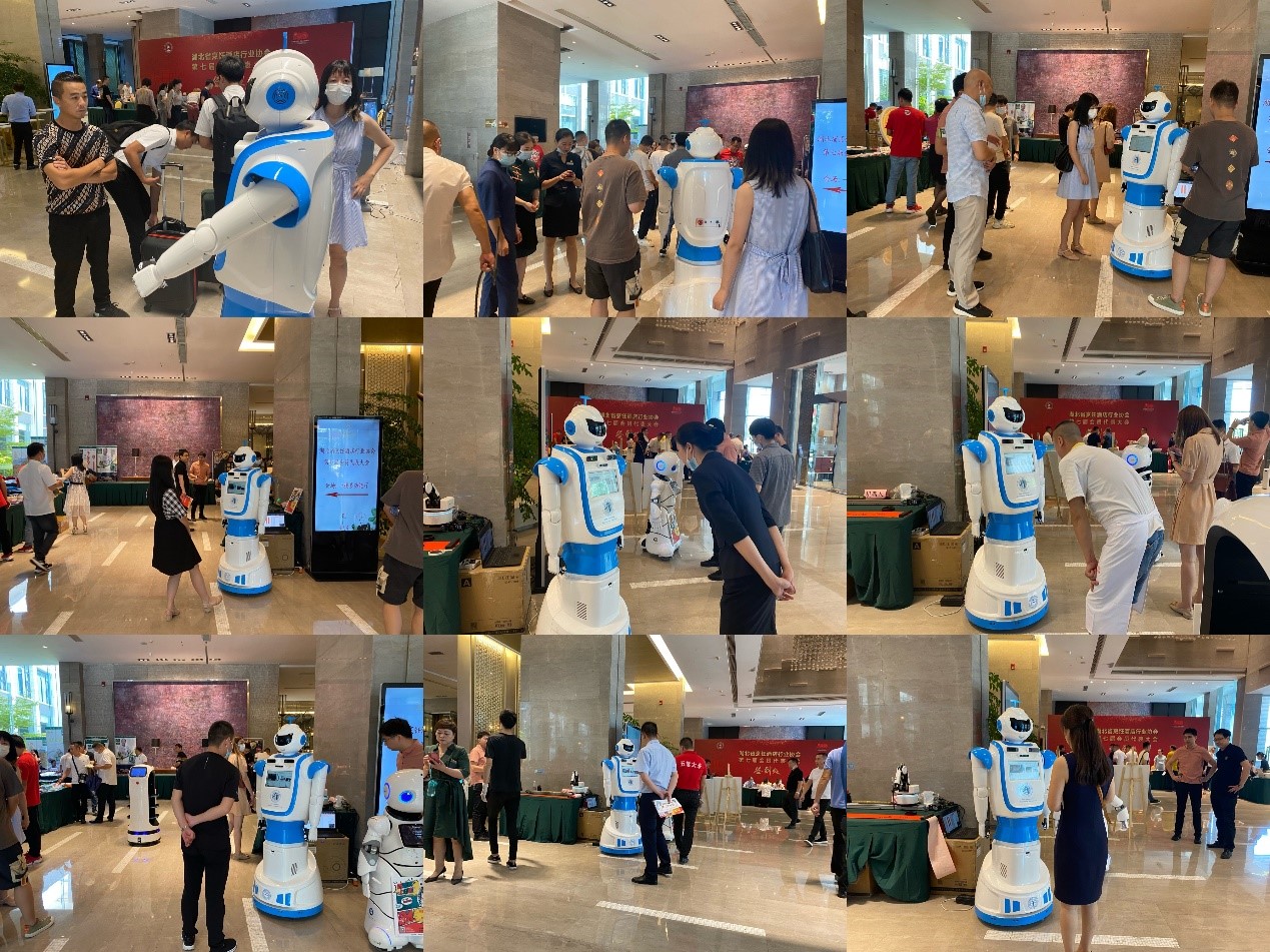2021年7月22日,在武汉市举办的湖北省烹饪酒店行业协会第七届会员代表大会上,由我院情感计算与情感计算人小组自主研制的情感机器人——WEBO(We Robot)应邀参与本次展览。