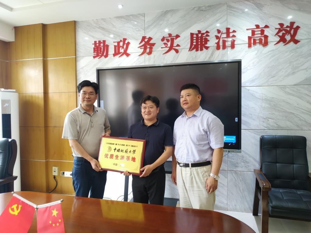 随后,学院党委副书记何建新代表学校为南县第一中学授牌“中国地质大学优质生源基地”,并与南县第一中学校长黄学军、副校长游云祥合影留念。