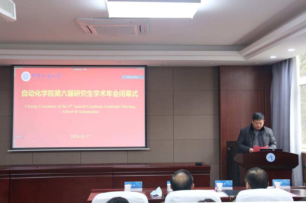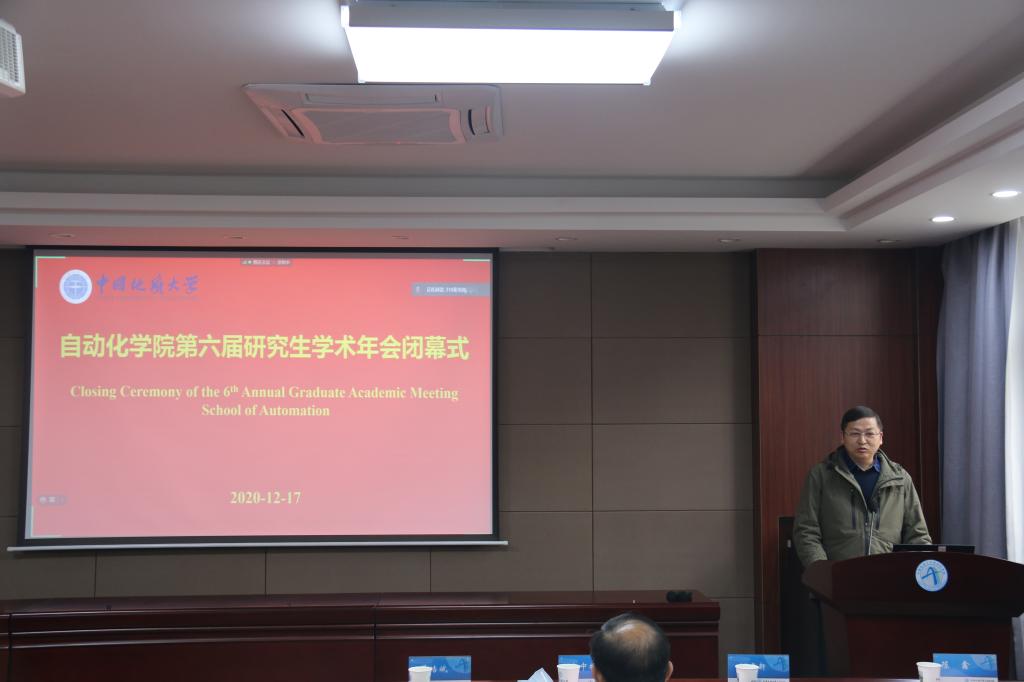 学院研究生会主席戈汪洋就第六届研究生学术年会作总结汇报。本届研究生学术年会历时2个多月,由华南理工大学陈俊龙教授和加拿大康考迪亚大学苏春翌教授的精彩学术报告拉开序幕。本届学术年会吸引100余名学院师生参加,期间成功举办了5场研究生科技论文报告会、2场青年学者报告会、2场研究生国际交流与成果汇报会,并邀请到华中农业大学章文教授、华中师范大学张晓飞教授、日本东京工科大学福島E.文彦教授、加拿大维多利亚大学施阳教授、英国利物浦大学Joseph Spencer教授、同济大学黄德双教授、北京大学邓明华教授、中国科学院张世华研究员、四川大学章乐教授、德国杜伊斯堡-埃森大学Andres Kecskeméthy教授、加拿大阿尔伯塔大学Witold Pedrycz教授、弗吉尼亚大学林宗利教授、温莎大学陈翔教授、纽约大学姜钟平教授、阿尔伯塔大学黄彪教授、阿尔伯塔大学陈通文教授、斯威本科技大学韩清龙教授、香港城市大学谢旻教授、香港中文大学黄捷教授、南洋理工大学谢立华教授、香港中文大学陈本美教授、日本产业技术大学院大学川田诚一教授、香港城市大学陈杰教授、国防科技大学胡德文教授、浙江大学苏宏业教授、英国埃塞克斯大学胡豁生教授等30位知名专家学者作学术报告,分享学科领域前沿动态,加强学院师生的学术交流。