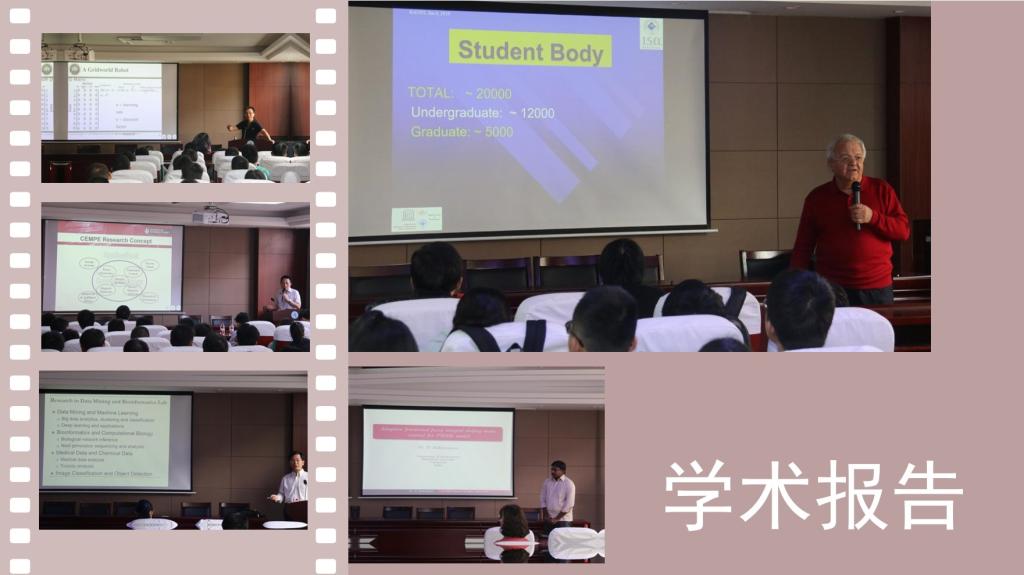 邀请国际著名学者作学术报告,营造具有国际视野的学术氛围。学院每年邀请国际著名学者来为学生作学术报告百余次,极大地开阔了学生的国际视野,营造了良好的学术氛围,激发了学生的科研兴趣,助力学生培养的国际化步伐。