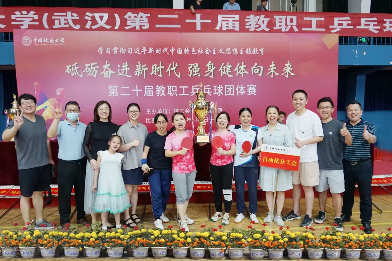 (通讯员:朱继轩)6月4日,为期两天的麻豆av 第二十届教职工乒乓球团体赛落下帷幕。来自学校20多个分会代表队的共200多名乒乓球爱好者齐聚西区体育馆, 为全校师生带来了多场高水平的精彩对弈。我院男女教职工乒乓球队团结一心、奋勇拼搏,男队闯进十六强,女队一路过关斩将,赢得第二十届教职工乒乓球女子团体赛冠军