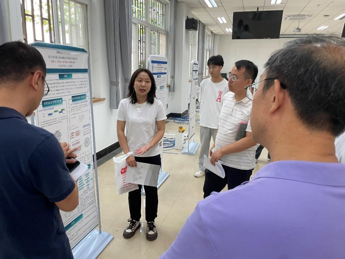 学生通过海报讲解的方式展示了毕业设计(论文)情况,并与现场评委和同学积极交流。在交流过程中,评委老师对参展论文从创新性、思想性、学术性和实际应用价值等方面进行了评价,并对学生的问题分析能力、海报制作等方面进行全面点评。