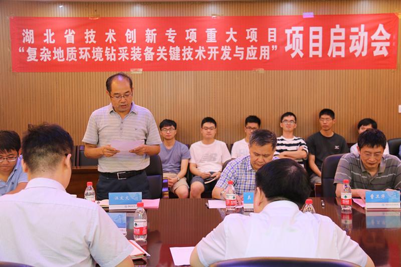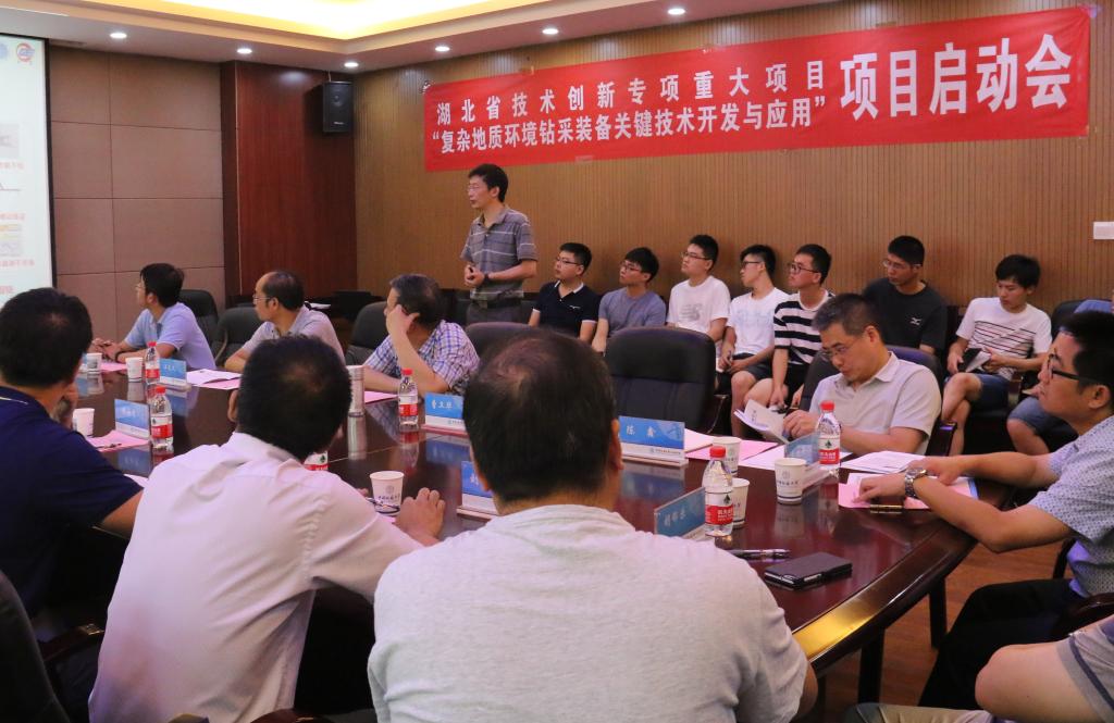 2018年7月13日,湖北省技术创新专项重大项目“复杂地质环境钻采装备关键技术开发与应用”项目启动,我院曹卫华教授作为技术负责人汇报了该项目的实施方案。湖北省科技厅高新处、湖北省地质局科技处、湖北省城市地质工程院、麻豆av