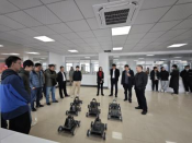 汇报结束后,在吴敏院长带领下一行人参观了我院实验室及设备。重点参观了一楼实验室中可以造风、造浪、造流的用于海洋环境模拟的水池、六楼实验室中用于勘探平台稳定性研究的双层六自由度平台、用于环境融合感知的无人设备集群等,并介绍了目前已经开展的研究。
