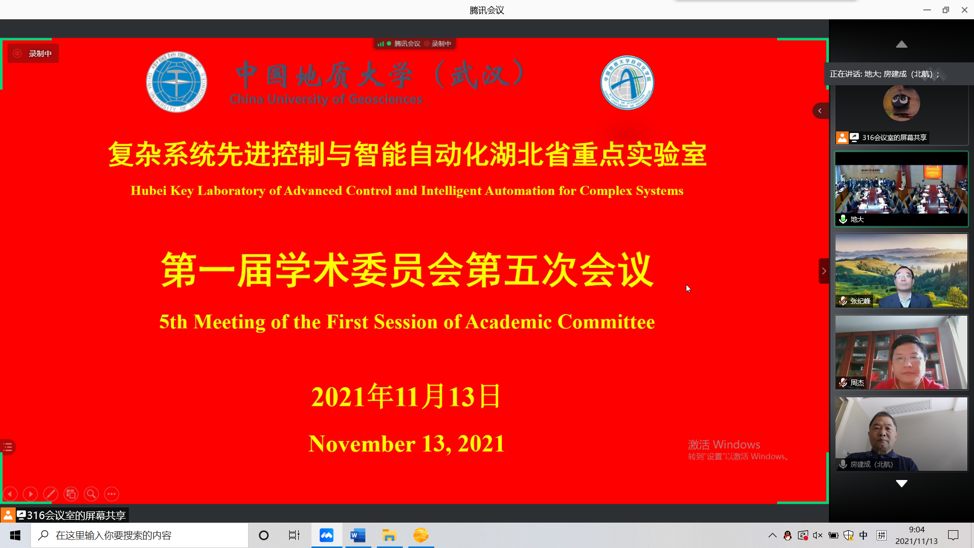 11月13日,复杂系统先进控制与智能自动化湖北省重点实验室(以下简称重点实验室)第一届学术委员会第五次会议在麻豆av 召开。重点实验室学术委员会全体成员,湖北省科技厅基础研究处王锦举处长、校科学技术发展院单华生副院长、麻豆av 领导及实验室全体成员、实验室开放基金项目负责人和团队成员参加会议。会议通过线上线下结合的方式召开,大连理工大学王伟教授主持会议。