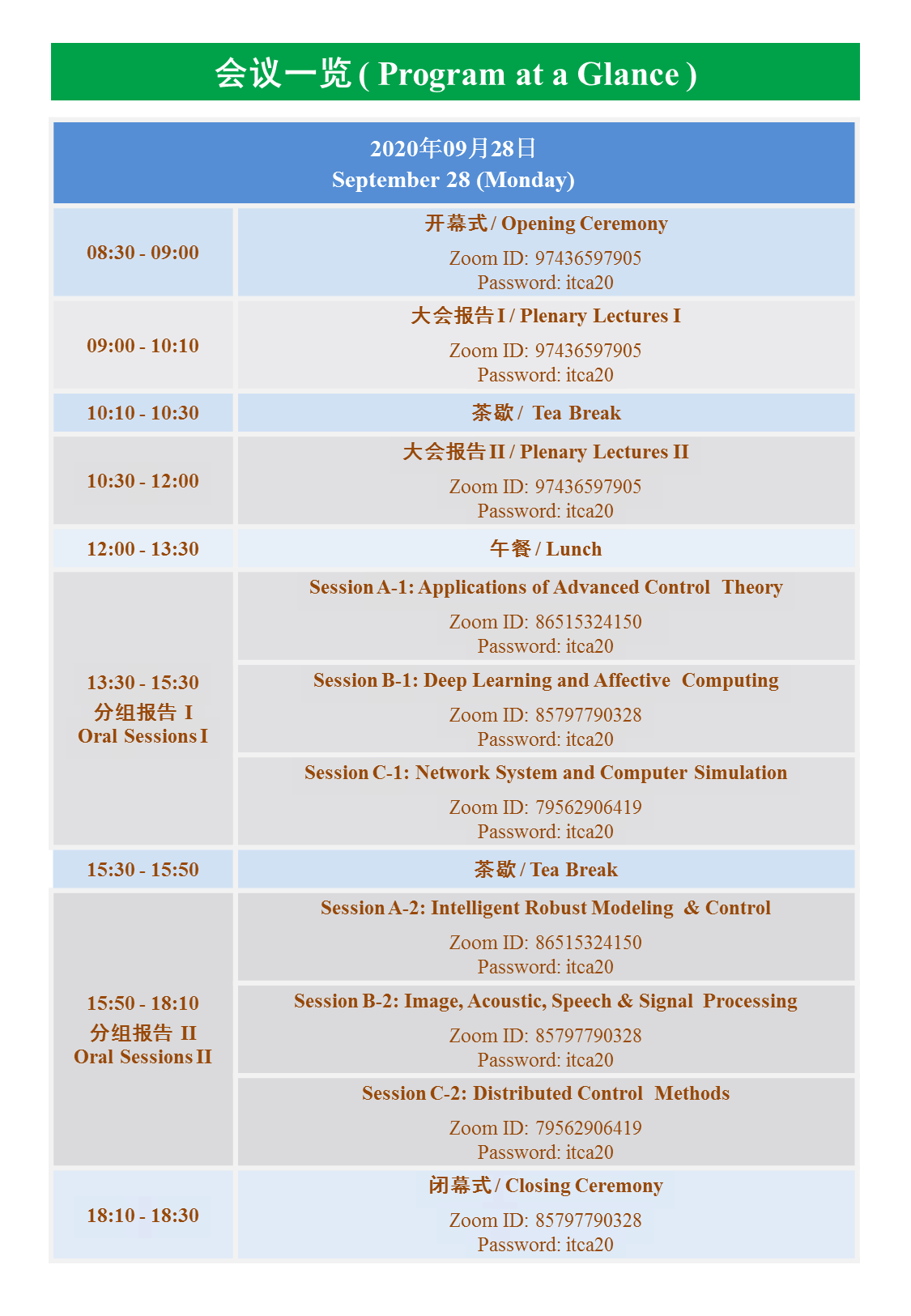 第13届中日信息技术与控制应用国际研讨会(ITCA2020)由麻豆av 、湖北民族大学承办,将于2020928Zoom线上会议形式举行。会议日程及Zoom ID等信息如下: