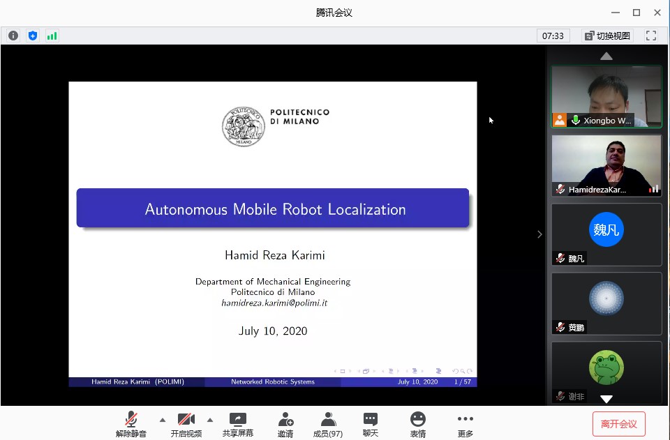 7月10日下午,意大利米兰理工大学 Hamid Reza Karimi 教授应邀为我院师生分别作了题为“Autonomous Mobile Robot Localization”和“Scientific Research Dissemination: Ethics, Publication, Evaluation”的在线学术报告。学院100余名师生参加了此次报告会。