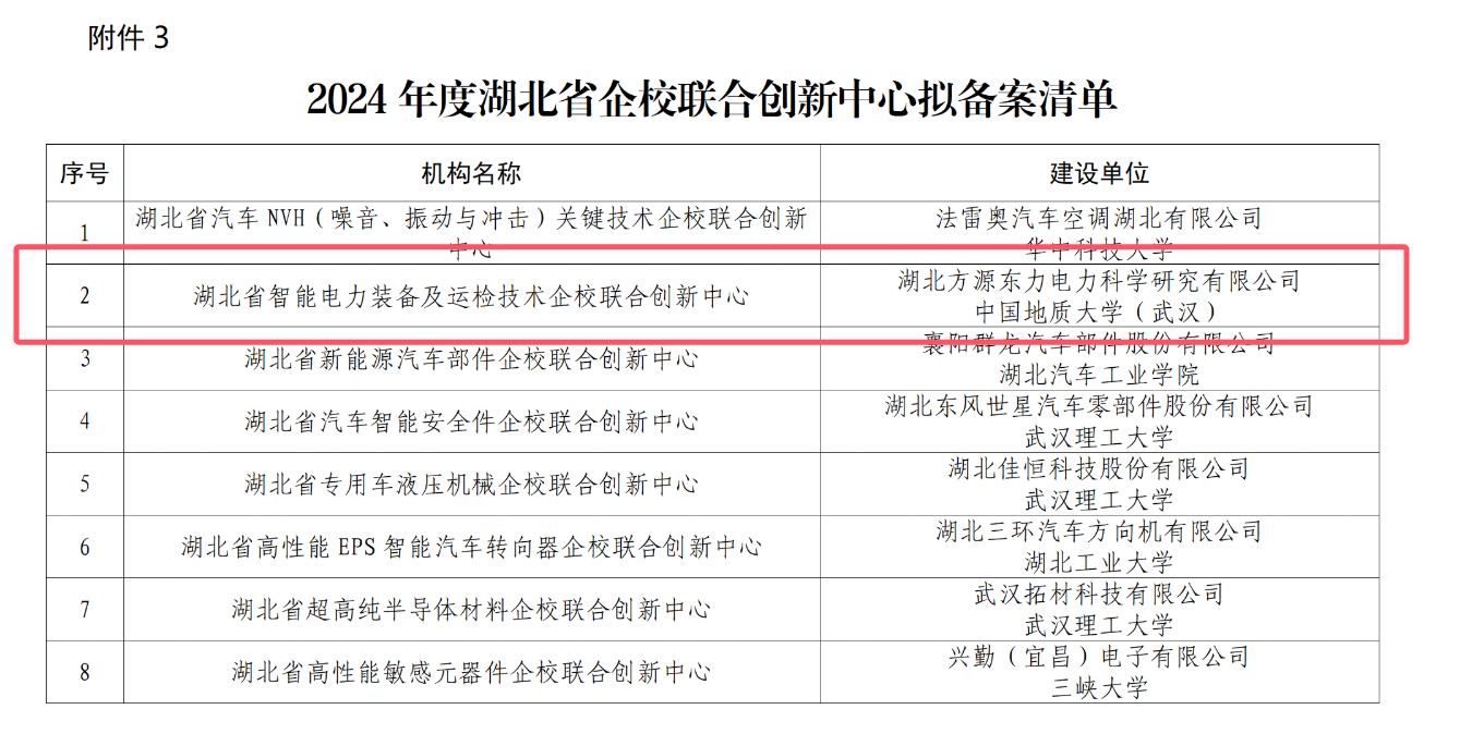与国网湖北电科院方源东力公司合作创建的“湖北省智能电力装备及运检技术企校联合创新中心”位列其中。