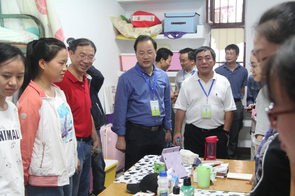 在我院新生宿舍51#205,我院领导巧遇校党委书记何光彩、副校长赖旭龙一行,校领导关切地询问我院新生的住宿情况,了解家长及新生对学校的感受,并对学生的新生活提出建议和希望。我院学生对校领导的到来表示非常激动,也深刻地感受到了学校对新生的关怀和问候,同时表示会发奋努力学习,争取为地大争光添彩。