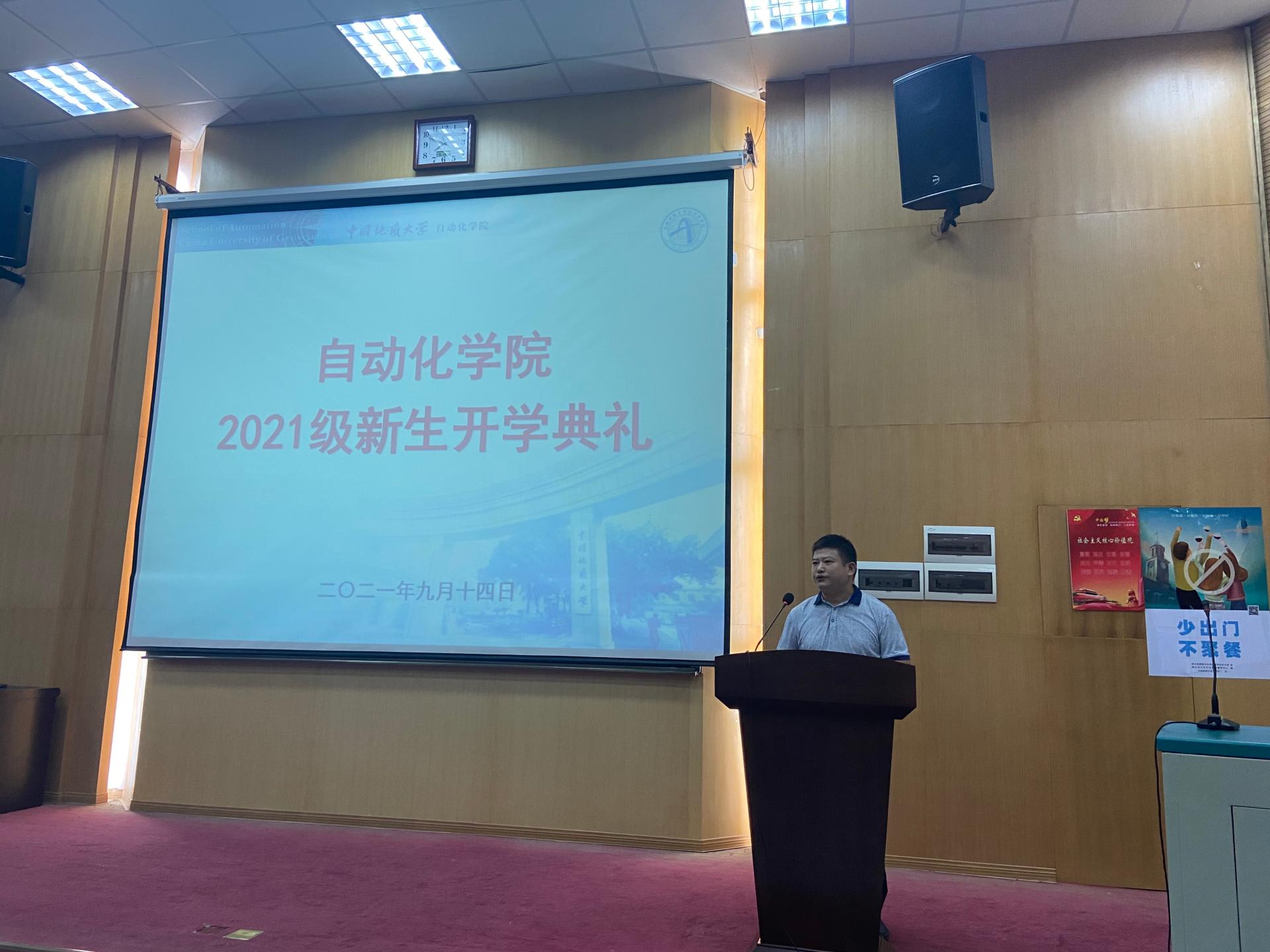 2021级新生开学典礼在教三楼109教室举行,学院党委书记董浩斌老师、院长曹卫华老师、副院长陈鑫、宗小峰老师,自动控制系系主任安剑奇老师、测控技术与仪器系董凯锋老师、学院办公室主任李儒胜老师、学工组辅导员黄兰华、孙静老师以及21级本科新生和研究生新生参加此次典礼。学院党委副书记何建新老师主持。