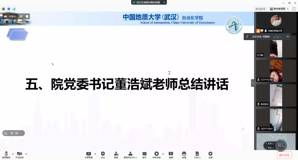 召开2021级新生家长线上座谈会。院党委书记董浩斌老师、院长曹卫华老师、院党委副书记何建新老师、副院长陈鑫老师、副院长宗小峰老师、副院长熊永华老师、副院长陈略峰老师、自动控制系系主任安剑奇老师、测控技术与仪器系系主任董凯锋老师、智能系统研究所所长刘振焘老师以及其他老师参加本次座谈会。学院召开此次新生家长座谈会旨在更好促进家校联合,让家长们对学校和学院有更加深入地了解。