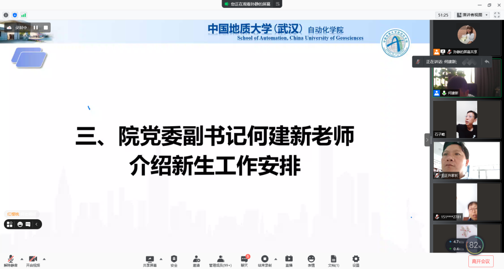 接着,院党委副书记何建新老师从学生规章制度、学校疫情防控措施等几个方面介绍了新生入学的工作安排。