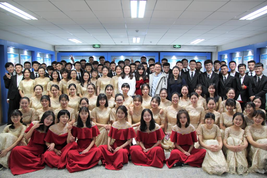 以辅导员许彦、刘一荻、黄兰华老师及一百名学生为代表,献唱了一首《国家》。在激烈的竞争中,我院学生凭借饱满的精神、磅礴的气势、昂扬的姿态、铿锵有力的颂词、娓娓动听的歌声和优美利落的手语荣获“优秀表演奖”,为近两个月的辛勤排练画上了圆满的句号。