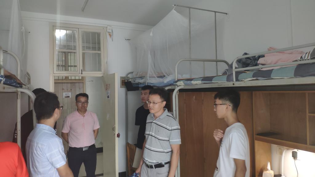 迎新工作将近尾声,院党委书记董浩斌、副院长曹卫华、副院长熊永华、副院长宗小峰、党委副书记何建新等学院领导和老师们分为四组走访了2019级本科生和研究生宿舍。