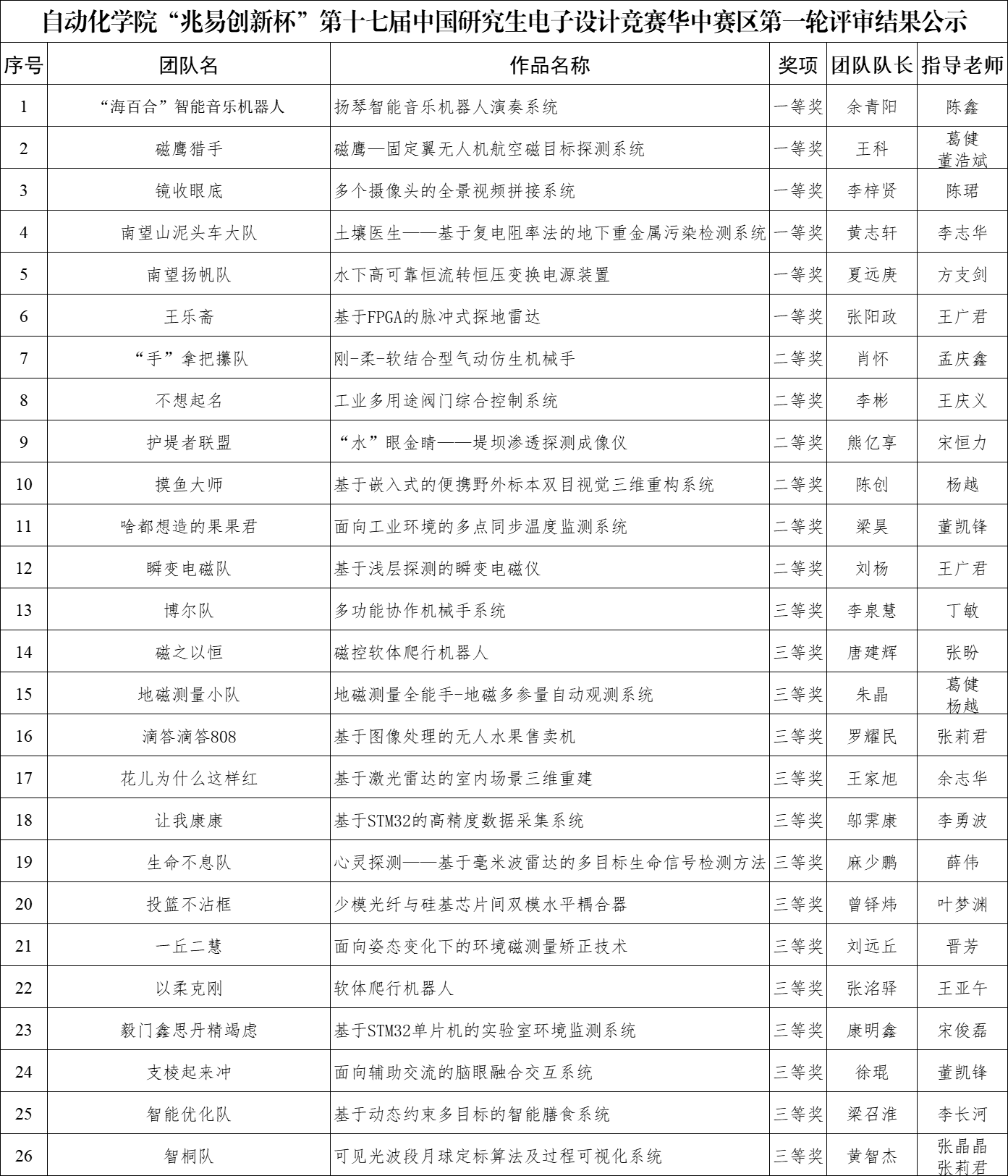 (通讯员 黄兰华 摄影 阮班铭 吕沅玉)8月5日,由教育部学位管理与研究生教育司指导,中国学位与研究生教育学会、中国科协青少年科技中心、中国电子学会共同主办的“兆易创新杯”第十七届中国研究生电子设计竞赛(以下简称“研电赛”)华中赛区评审结果公示,我院研究生参赛团队一路过关斩将,荣获华中赛区一等奖6项,二等奖6项,三等奖14项,刷新了我院研究生参赛以来的历史最好成绩。
