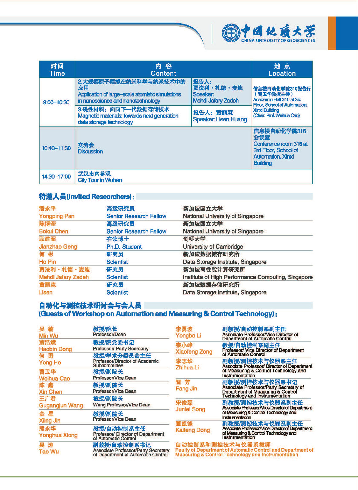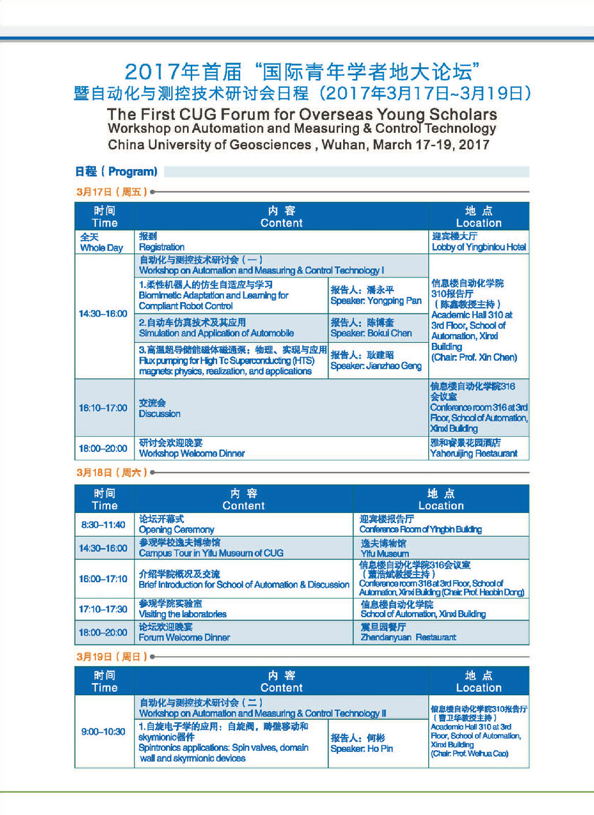 我校举办首届“国际青年学者地大论坛”旨在面向海外邀请不同学术背景的青年才俊,围绕国际科学前沿、热点研究领域开展学术研讨,互相启迪,开拓视野,增强国际交流与合作,引进海外优秀青年人才。为此,我院将召开自动化与测控技术研讨会,具体日程安排如下: